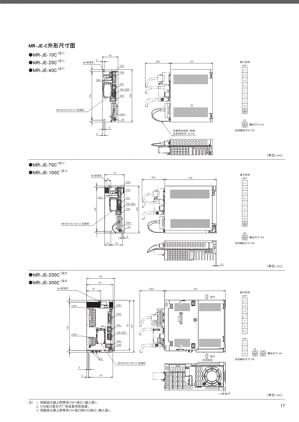 | 伺服放大器型號(hào)MR-JE- | 10C | 20C | 40C | 70C | 100C | 200C | 300C | |