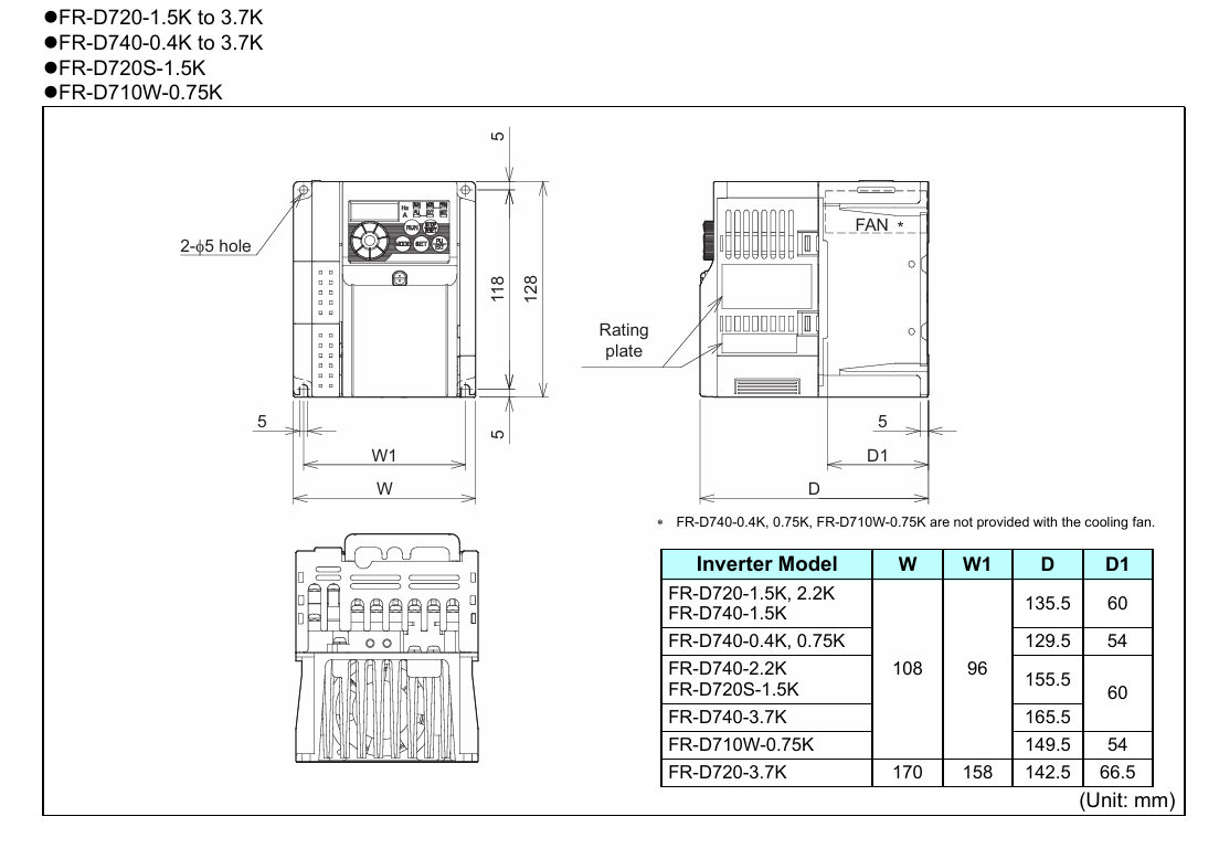 | FR-D710W-0.75k | 0.75 | 1.7 | 4.2 | 2.5 | 1.4 | 108*96*149.5 | |