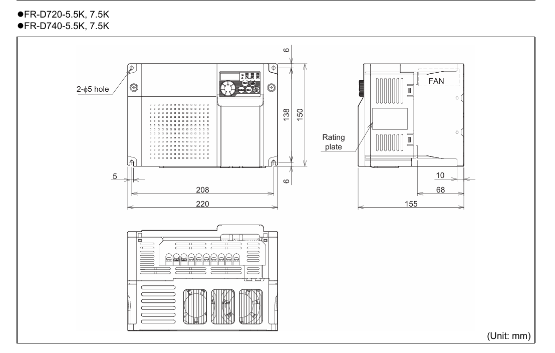 | FR-D720-5.5k | 5.5 | 7.5 | 23.8 | 12.0 | 3.6 | 220*150*155 | |
