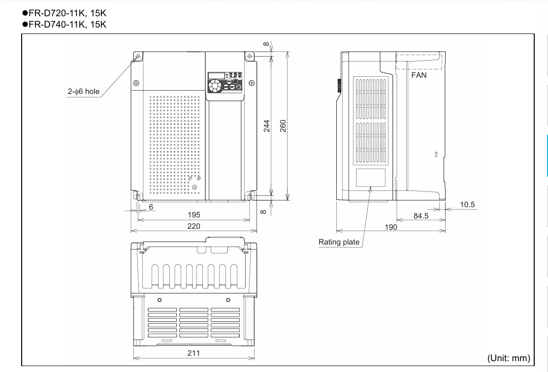 | FR-D740-11k | 11 | 17.5 | 23.0 | 20.0 | 6.0 | 220*260*190 | |