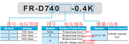 | FR-D740-0.4k | 0.4 | 0.9 | 1.2 | 三相380~480V | 1.5 | 1.3 | 108*128*129.5 |