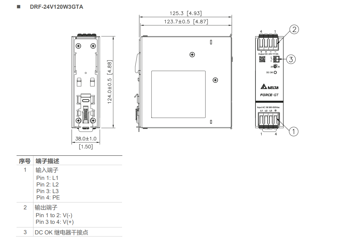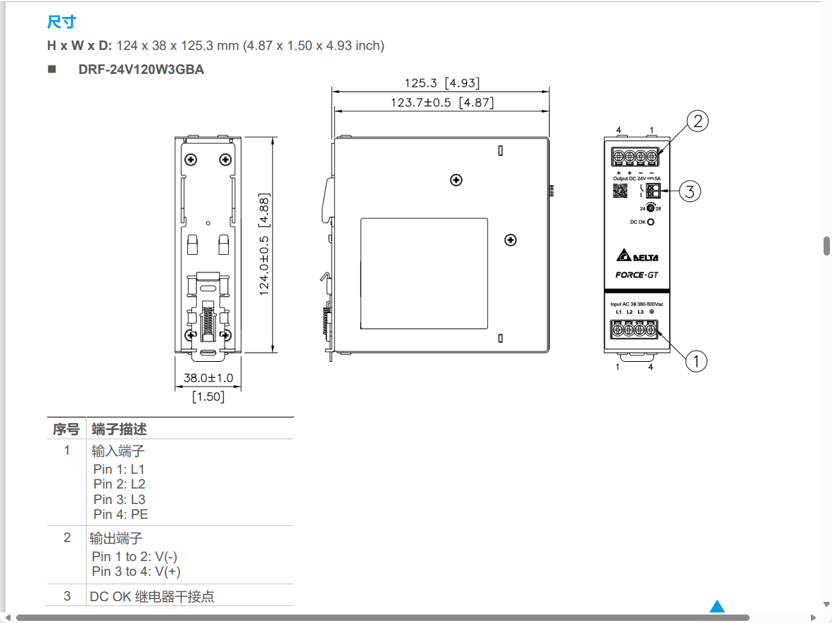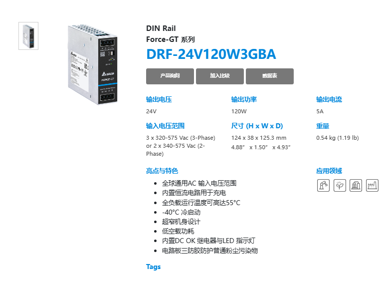 | 輸出 | DRF-24V120W3GBA | DRF-24V240W3GBA | DRF-24V480W3GBA | DRF-24V960W3GBA | |