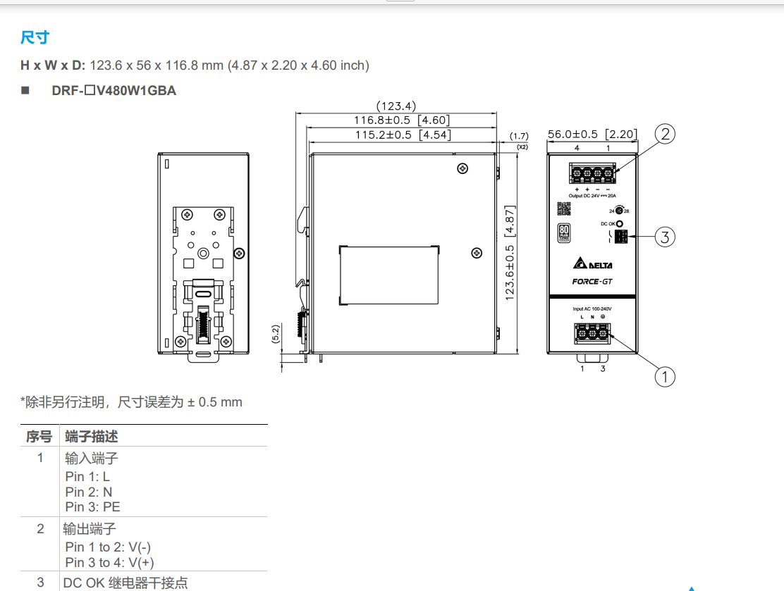 | 輸出 | DRF-12V120W1GBA | DRF-12V240W1GBA | DRF-24V120W1GBA | DRF-24V240W1GBA | DRF-24V480W1GBA | DRF-48V120W1GBA | DRF-48V240W1GBA | DRF-48V480W1GBA | |