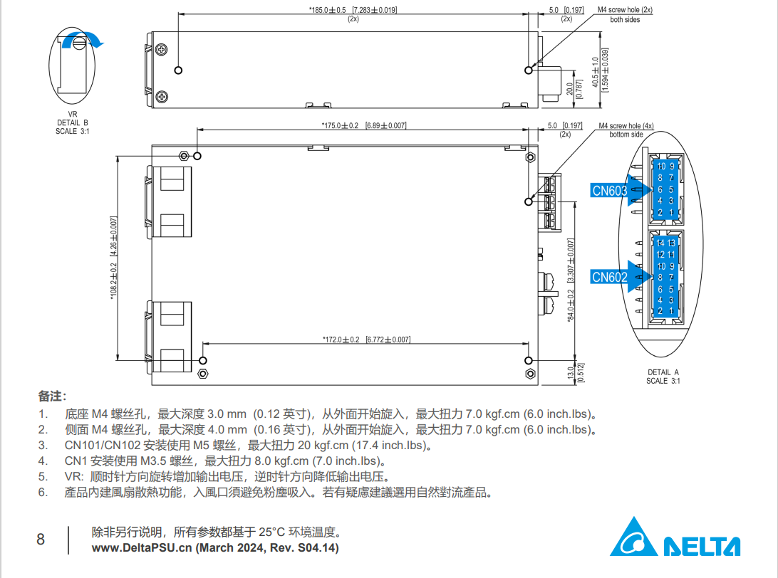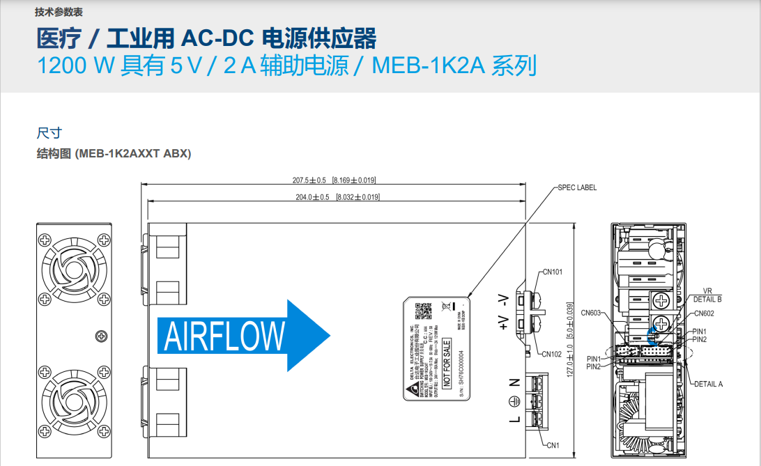 | 滿載效率 | 115VAc(60Hz) | 90.0%typ. | 90.9%typ. | 91.5%typ. |