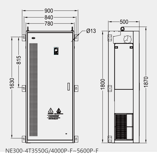 | NE300-4T0450G/0550P | 90/110 | 45/55 | 535 | 320 | 248 | 560 | 240 | 540 | 9 | 28 |