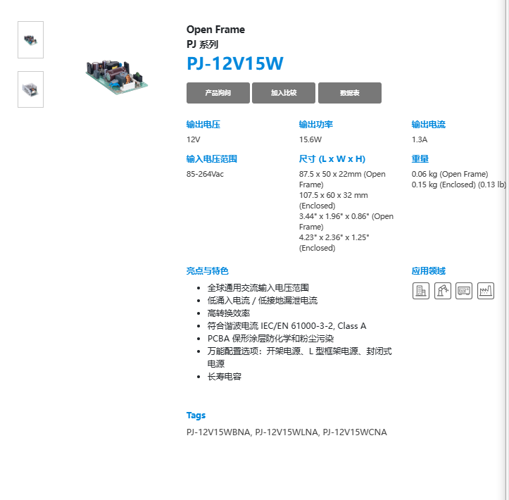 | 輸出 | PJ-5V15W口NA | PJ-12V15W口NA | PJ-12V30W口NA | PJ-12V50W口NA | PJ-12V100W口口A | PJ-12V150W口口A | |