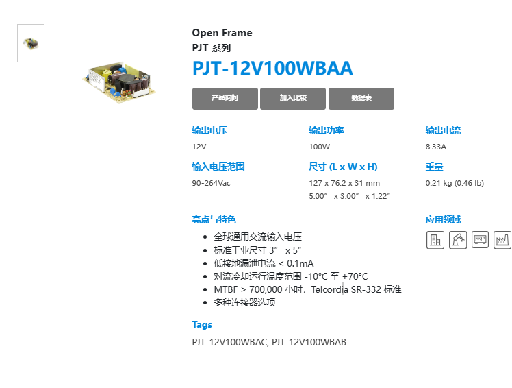 - MTBF > 700,000 小時,Telcordia SR-332 標準