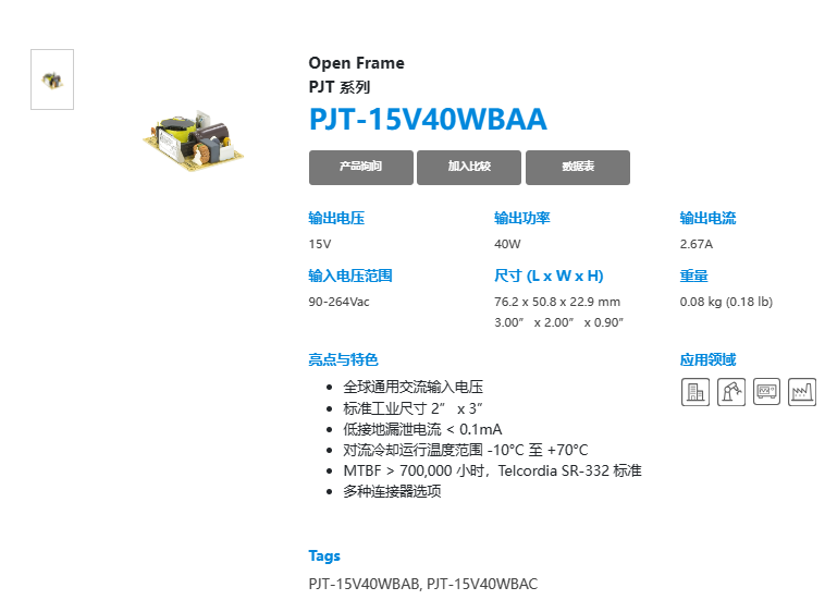 | 輸出 | PJT-15V40WBA口 | PJT-15V65WBA口 | PJT-15V100WBA口 | PJT-15V100WBB口 | |