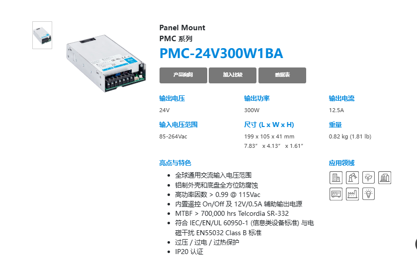 功率因素 115VAC 符合 EN 61000-3-2 > 0.99 > 0.98