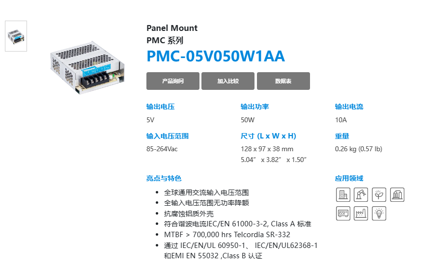 功率因素 115VAC 符合 EN 61000-3-2 > 0.99 > 0.98