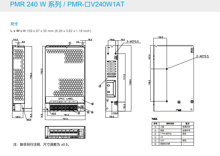 | 輸出 | PMR-12V320W1AT | PMR-24V320W1A | PMR-36V320W1AT | PMR-48V320W1AT | |