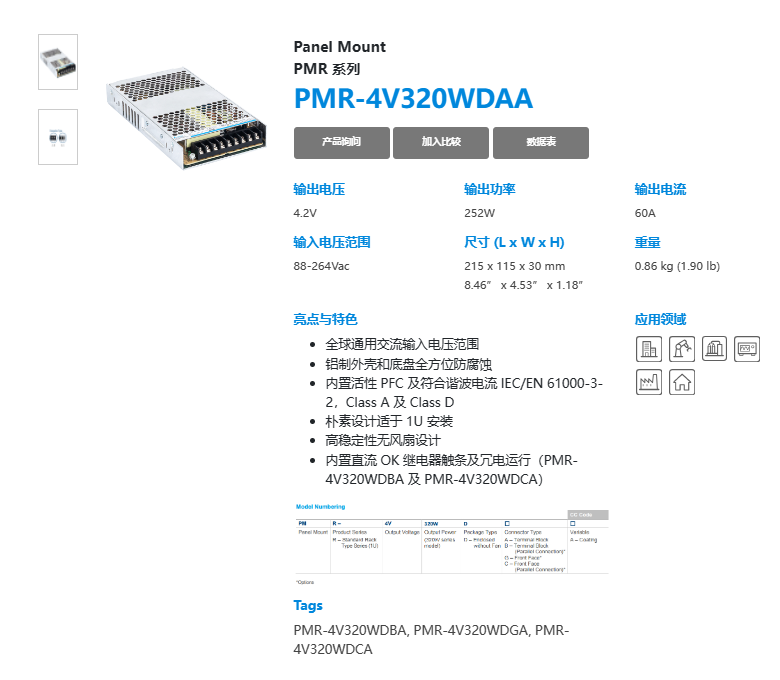 - 內置活性 PFC 及符合諧波電流 IEC/EN 61000-3-2,Class A 及 Class D